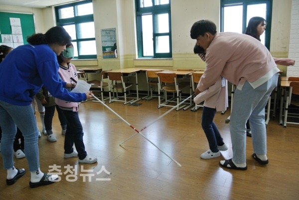 건양대학교(총장 정연주) 초등특수교육과는 장애인의 날을 맞아 18일 논산 내동초등학교에서 통합학급 학생을 대상으로 한 장애체험활동을 진행했다고 밝혔다.