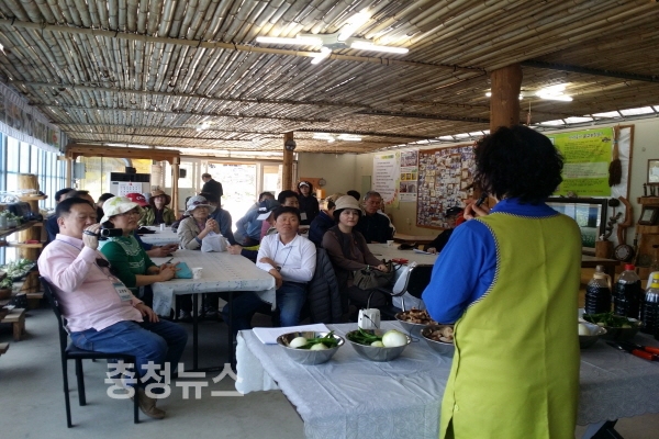 21일 봉산면에 위치한 산에들에 농장에서 버섯장아찌 체험을 위한 교육을 하고 있다