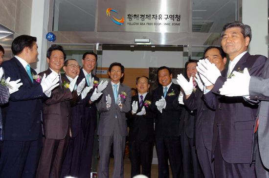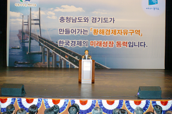 경기도와 충남도는 22일 당진군 문예의 전당에서 이윤호 지식경제부장관과 김문수 경기 지사, 이완구 충남 지사, 김성배 경제자유구역청장 및 양 도의회 의장, 시장.군수, 주민 등 500여명이 참석한 가운데 황해경제자유구역청 개청식을 가졌다.