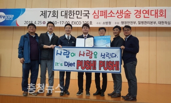 지난 25일 대구전시컨벤션세터(EXCO)에서 열린 ‘제7회 전국 심폐소생술 경연대회’에서 대전도시철도공사 이츠디젯팀이 대상인 국무총리상을 수상하는 영예를 안았다.