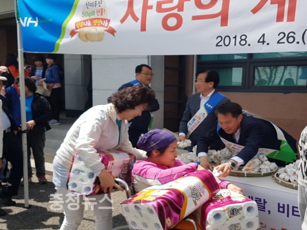 농협충남지역본부 조소행 본부장은 " 최근 계란 산지가격이 농가 생산비 이하로 떨어져 양계농가의 어려움이 가중되고 있어, 계란 소비 확대와 이웃 사랑을 실천하고자 이번 행사를 개최하게 됐다고 밝히고, 요즈음 범 농협 계란 소비촉진을 운동을 하고 있는데 많은 분들이 동참해 양계농가도 돕고, 계란으로 건강을 챙기시길 바란다”고 하였다.