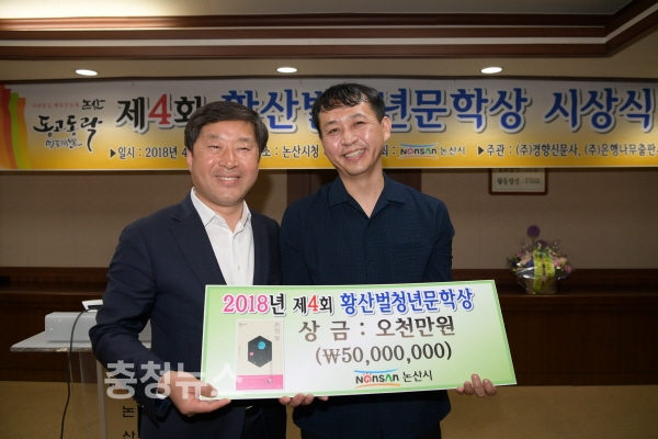한편, 2014년 1회 공모를 시작으로 현재까지 총 4회 공모를 진행한 황산벌청년문학상은 1회는 이동효 씨의 《노래는 누가 듣는가》, 2회는 조남주 씨의 《고마네치를 위하여》, 3회는 《위안의 서》를 쓴 박영 씨가 수상했으며, 이번 수상자에게는 상금 5천만원이 수여된다.