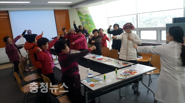 치매예방교실은 중앙치매센터에서 개발한 두근두근 뇌운동 프로그램을 이용해 치매예방체조와 함께 기억력, 주의집중력, 지남력, 계산력, 시공간능력을 요하는 프로그램으로 진행된다.