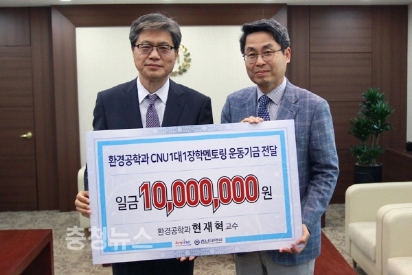 충남대 환경공학과 현재혁 교수가 환경공학과 설립 30주년을 맞아 ‘CNU 1대1 장학 멘토링 운동기금’을 기부했다.