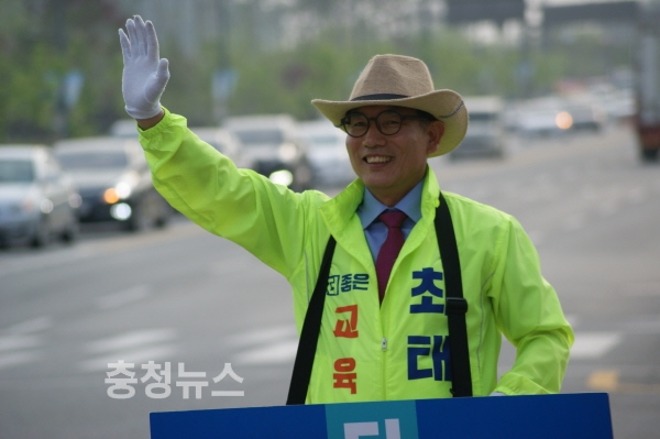 최태호 세종시교육감 예비후보는 1일 출퇴근 시간에 세종시 고운중학교 앞 사거리에서 시민들에게 가두 인사로 선거운동에 나섰다.