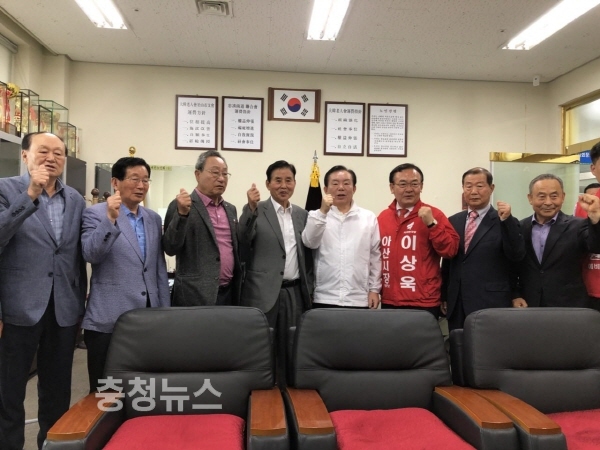 이인제 충남도지사 후보가 2일 아산시를 방문해 (사)대한노인회 아산시지회 부설 노인대학사무실에서 회원들과 간담회를 가졌다.