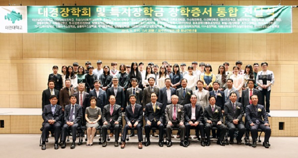 대전대는 2일 대학 30주년기념관 하나컨벤션홀에서 이종서 총장을 비롯해 대경장학회 고규환 회장과 장학회 관계자 등이 참석한 가운데 열린 ‘2018학년도 1학기 대경장학회 및 특지장학금 전달식’에서 총 45명의 학생에게 6000여 만 원의 장학금을 전달했다. 저작권자 © 충청뉴스 무단전재 및 재배포 금지 충청뉴스 다른기사 보기 기사가 마음에 드셨나요? 충청뉴스 좋은 기사 후원하기 1,000원 3,000원 5,000원 10,000원 30,000원 50,000원 직접입력 비회원 약관동의하기 ※ 소중한 후원금은 더 좋은 기사를 만드는데 쓰겠습니다.