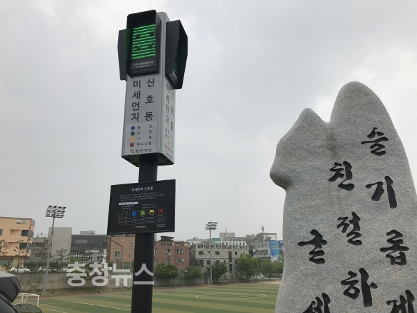 특히 지난해와 올해 설치된 미세먼지 신호등 모두 여름철에 오존주의보가 발령되면 주의보 내용도 글자로 함께 표출해주기 때문에 학생들이 야외 활동을 할 때 그 날의 대기상태를 확인하고 대처하는데 도움이 된다.