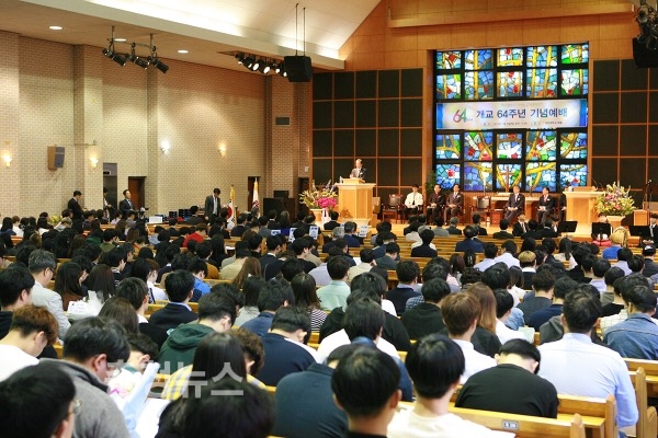 목원대학교(총장 박노권)는 3일 오전 11시 교내 채플에서 개교 64주년 기념예배 및 기념식을 가졌다.