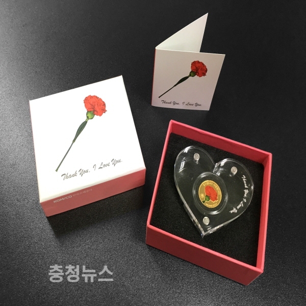 특히 카네이션 순금 메달은 메달 앞면에 감사의 메시지와 함께 빨간 카네이션을 채색해 예술성을 높였고, 뒷면에는 사랑을 담은 하트 모양의 무늬를 새겼다.
