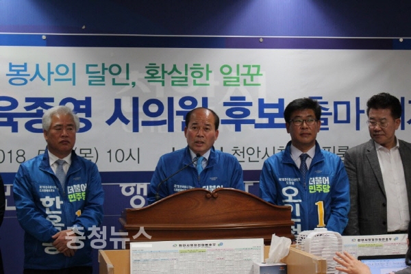 더불어민주당 육종영 천안시의원 예비후보는 3일, 천안시청 브리핑실에서 기자회견을 갖고 “북부 4개 읍면을‘천안의 새로운 미래’로 만들겠다”고 밝혔다.