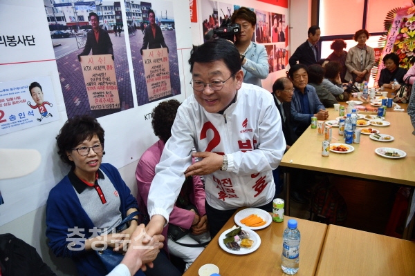 그는 자신의 슬로건인 ‘일로써 평가받고 일로써 검증받는 송인석’을 외치며 “주민을 섬길 사람 저 한 번 믿어 달라”고 지지를 호소했다.