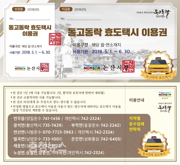 충남 논산시에 동고동락 행복버스에 이어 동고동락(同苦同樂) 효도택시가 등장했다.