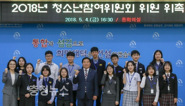 대전 대덕구가 지난 4일 구청 중회의실에서 청소년들이 지방자치단체 정책, 사업추진 과정에 주체적으로 참여하하기 위해 ‘청소년참여위원회 위촉식’을 가졌다.