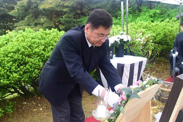 이날 국립대전현충원에서 열린 추모식에는 박준영 을지대학교 설립자를 비롯해 홍성희 을지대학교 총장, 박준숙 범석학술장학재단 이사장 등 50여 명이 참석했다.