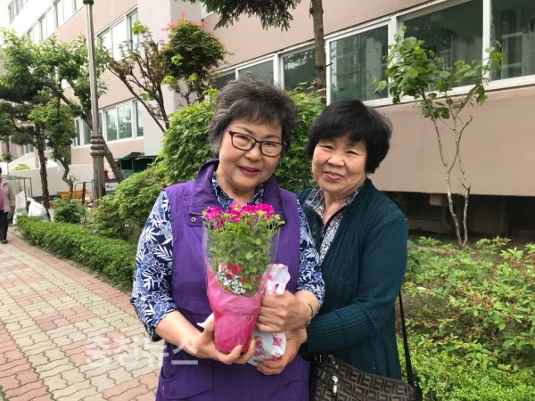 기념선물과 카네이션 화분을 전달 받은 임OO(90,탄방동)어르신은 ‘예쁜 카네이션과 선물을 받아 기쁘지만 무엇보다 그리웠던 정을 선물 받아 너무나 기쁘다“며 감사의 마음을 전했다.