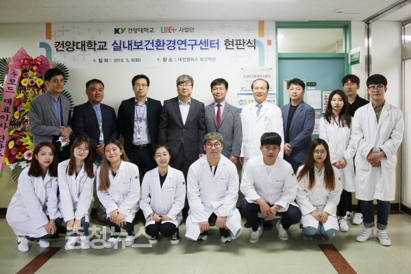 건양대학교(총장 정연주) 산학협력단(단장 겸 LINC+단장 김영일)은 8일 건양대학교 대전 메디컬캠퍼스에서 ‘실내보건환경연구센터’ 개소식 및 현판식을 갖고 본격적인 실내보건환경에 대한 본격적인 연구 시작을 알렸다.