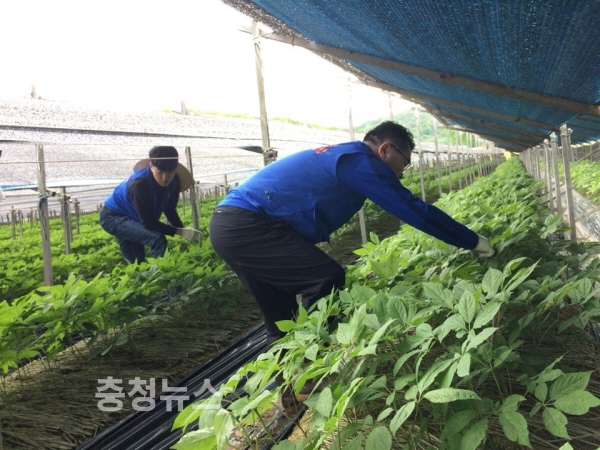 이번 일손돕기는 인력 감소와 고령화로 인해 일손을 쉽게 구하기 어려운 농가를 돕고자 실시됐으며, 직원들은 인삼 꽃 따기 작업 에 구슬땀을 흘렸다.