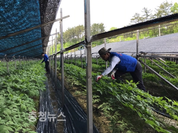 일손 부족 농가 방문, 인삼 꽃 따기 작업 등 참여