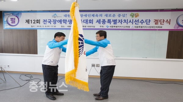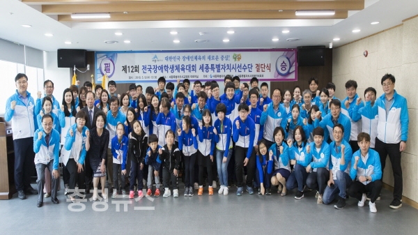 세종시선수단이 오는 15일부터 18일까지 충청북도 일원에서 열리는 제12회 전국 장애학생 체육대회에 참가함에 따라 9일 결단식을 가졌다.