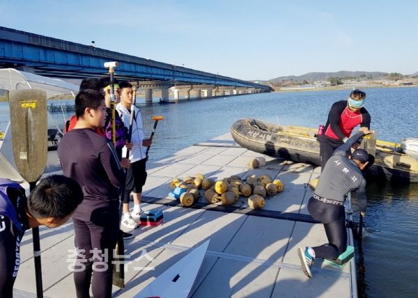 시청 카누팀은 지난달부터 매주 1회 음암면 성암저수지에서 학생 선수들을 대상으로 지상 패들링 훈련을 통한 자세교정과 캐치동작 등을 중심으로 지도하고 있다.