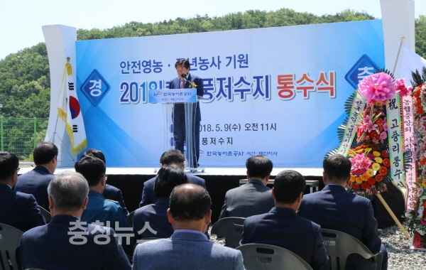 최규성 사장은 9일 충남 서산 고풍저수지에서 개최된 통수식에서 해를 거듭 할수록 강도를 더해가는 가뭄 등 기후변화에 대한 해결과제로 다각적인 수자원관리 체계를 마련, 농업인의 안정적인 영농 지원에 최선을 다하겠다고 밝혔다.