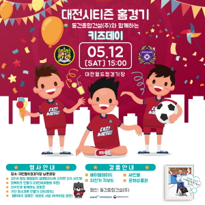 대전시티즌이 5월 가정의 달을 맞아, 12일 대전월드컵경기장에서 열리는 FC안양과의 홈경기에서‘동건종합건설(주)와 함께하는 키즈데이’를 진행한다.
