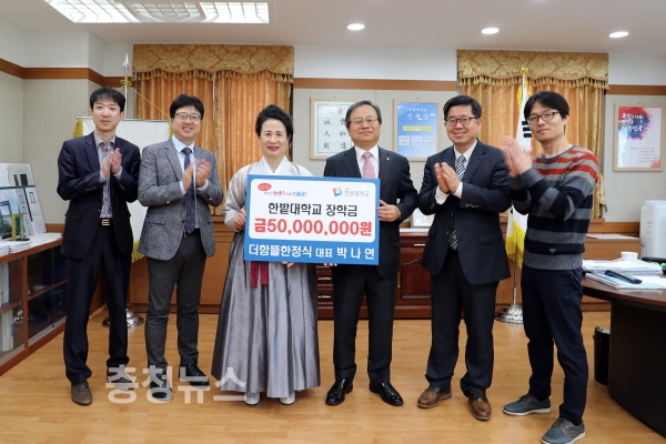 전달식에서 박나연 대표는 “어려운 형편에서도 학업에 매진하고 있는 대학생들을 응원하기 위해 장학금 기부를 결심하게 됐다”며 “한밭대를 통해 우리 사회를 이끌어 갈 든든한 재목들이 더 많이 배출되기를 바란다”고 기원했다.