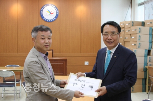한현택 동구청장이 10일 대전 동구청장 예비후보 등록을 마치고 본격적인 선거운동에 뛰어들었다.