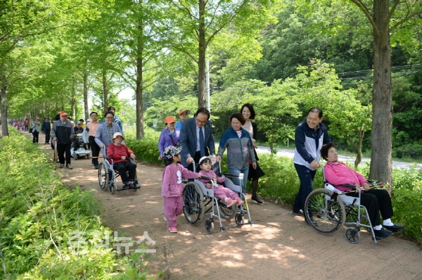 이날 행사에는 박용권 공주시장 권한대행을 비롯한 도의원, 시의원, 중증장애인과 자원봉사자, 관계공무원 등 250여 명이 참석한 가운데 정안천 생태공원 아름다운 경관을 함께 걸으며 함께 사진을 찍는 등 즐거운 시간을 보냈다.