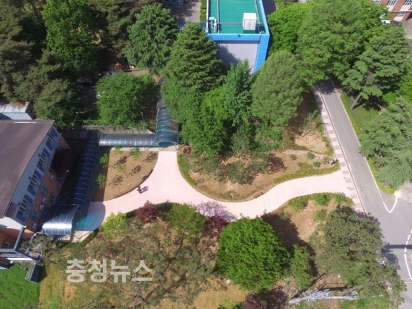 지난 2월 학교 정문 옆 나대지에 꽃과 나무가 어우러지는 숲 조성을 목표로 소나무 등 16종 3417주의 나무와 초화를 식재해 녹색 숲과 쉼터로 탈바꿈 시켰으며, 휴식과 산책을 위한 편익시설 등을 시공해 학생은 물론 인근 주민들에게 숲체험과 소통공간으로 활용할 수 있게 했다.