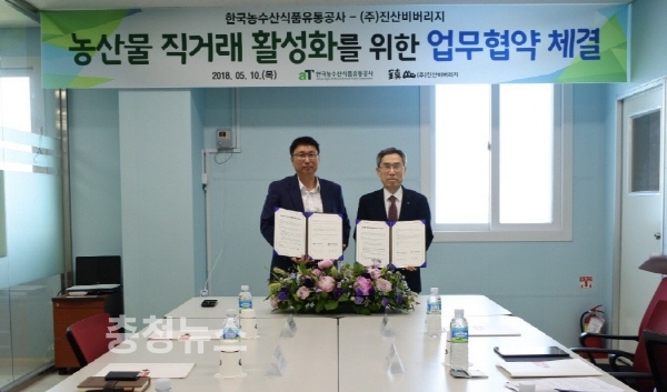 한국농수산식품유통공사(aT, 사장 이병호) 사이버거래소(소장 오형완)는지난 10일 제주도에서 제주산 과일과 채소 등의 원료를 기반으로 음료제품을 생산하는 기업인 ㈜진산비버리지와 '과채음료 원료농산물의 유통·가공 및 판매 활성화를 위한 업무협약'을 체결했다.