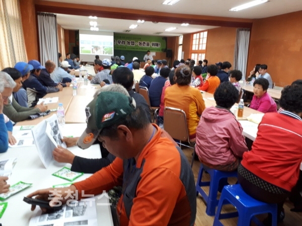 충남 보령시는 지난 11일 청라 장현마을에서‘농업환경보전 프로그램’의 시범 연구 마을로 선정된 전남 함평 백년마을 주민과 농식품부 실증연구팀 등 100여 명이 참석한 가운데 선진지 견학이 진행됐다고 밝혔다.