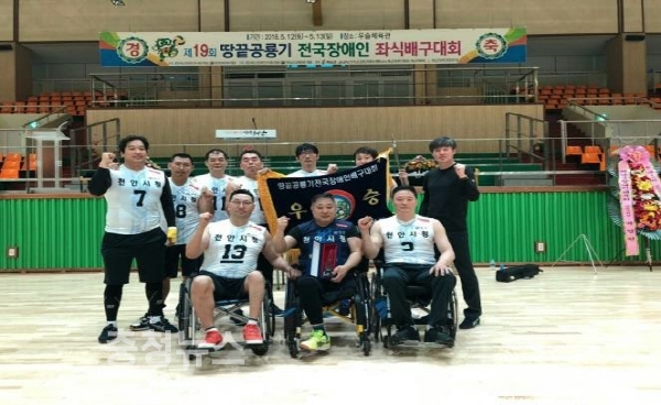 충남 천안시청 좌식배구단(감독 강용석)이 지난 12일부터 13일까지 해남우슬체육관에서 열린 제19회 해남땅끝공룡기 전국장애인 좌식배구 대회에서 우승을 차지했다.