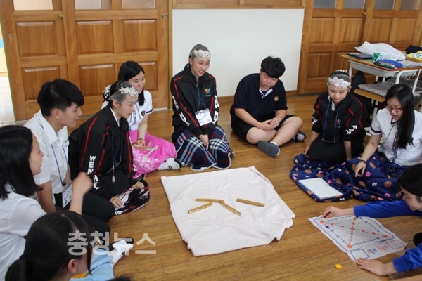 지난 14일 세종국제고 학생들과 대만문화고 학생들이 전통문화 체험을 하고 있다.