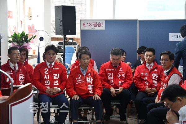 한편, 이날 행사에는 이은권 시당위원장, 이장우 국회의원, 양홍규(서구을)·육동일(유성을) 당협위원장, 이병령 전 유성구청장, 박성효 대전시장 후보, 성선제 동구청장 후보, 윤진근·김선광·박종호 중구시의원 후보, 우애자·황경아 시의원(비례) 후보, 김연수·박주화·이정수·김옥향·안형진·조재철·조은경(비례) 중구의원 후보 등 당원 및 지지자 300여 명이 참석했다.