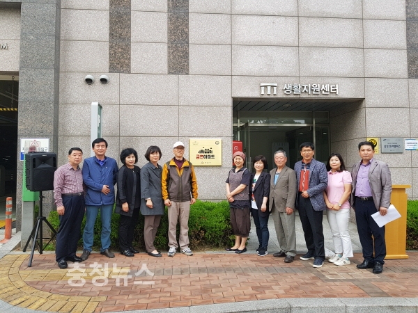 탕정트라팰리스 아파트의 현판식 제막 모습