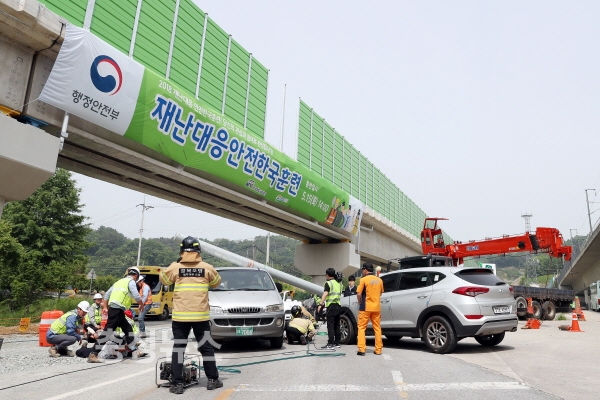 철도공단은 최근 포항·경주 지역에서 발생한 지진이 철도건설현장에서 발생 시 대처 역량과 유관기관과의 협력체계 강화를 위해, 철도종합시험선로 건설현장에서 규모 6.5의 지진 발생으로 크레인이 넘어져 군도 20호선을 운행하던 승합차량을 덮친 상황을 가정해, 화재진압, 철도시설물 긴급 안전진단 등의 순서로 실제상황처럼 진행됐다.