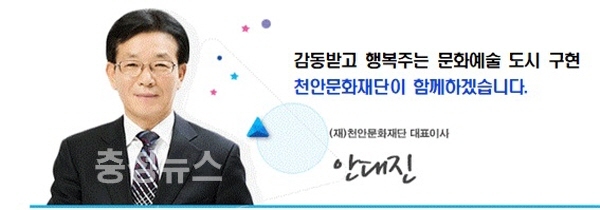 충남 천안문화재단 안대진 대표이사가 16일 취임 100일을 맞았다. ‘감동받고 행복주는 문화예술 도시 구현’을 슬로건으로 내세우며 취임한 안 대표는 설립 6주년을 맞이한 재단 사업을 더욱 활성화 시키고 있다.