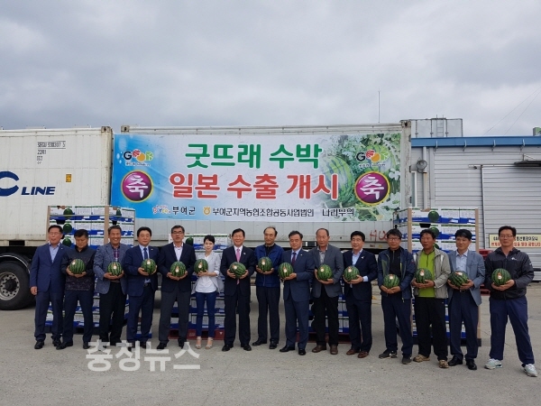 굿뜨래수박 일본 수출은 2011년 수출 대행업체, 일본 수입업체와 수출확대 글로벌 업무협약을 체결한 이후 지속적으로 추진됐다. 지난해는 3차에 걸쳐 약 30톤가량을 북해도에 수출했으며, 일본 소비자 공략에 효과가 나타나면서 올해도 수출길에 올랐다.