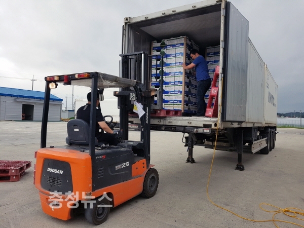 충남 부여군은 16일 규암농협산지유통센터에서 지난주 1차분 5.6톤을 수출에 이어 2차분 5.6톤을 일본에 선적했다.