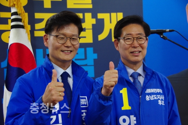 양승조, 박수현 비롯해 세몰이 보여주며 필승 다짐