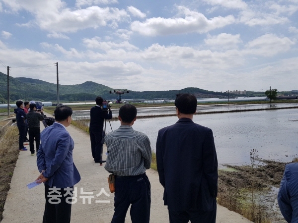 천안시, 농업용 ‘드론’볍씨 파종 시연