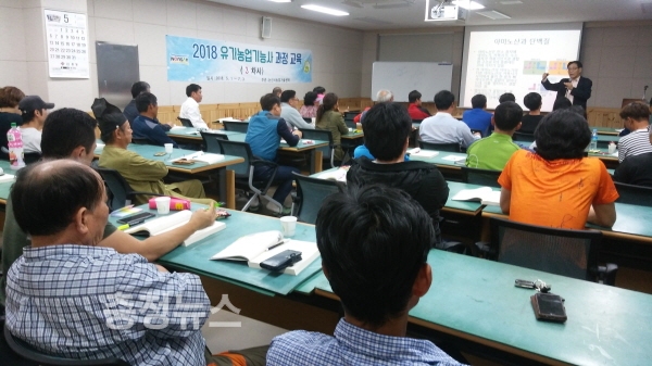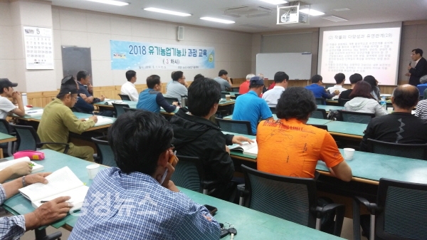 이번 교육은 소비자의 안전한 농산물 생산 요구에 맞춰 유기농업을 활성화함으로써 유기농산물 생산기술을 높이고 국가공인 기술자격증 취득을 통한 전문 유기농업인 육성을 위해 마련됐다.