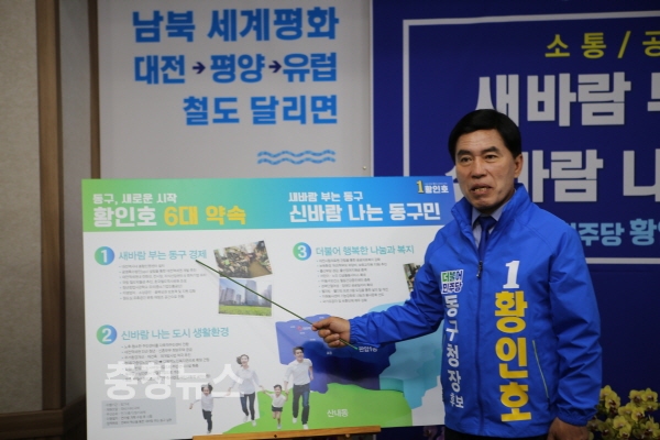 더불어민주당 황인호 대전동구청장 예비후보는 21일 오후 선거사무소에서 “새바람 부는 동구, 신바람 나는 동구민”을 위한 3대 비전을 발표했다.