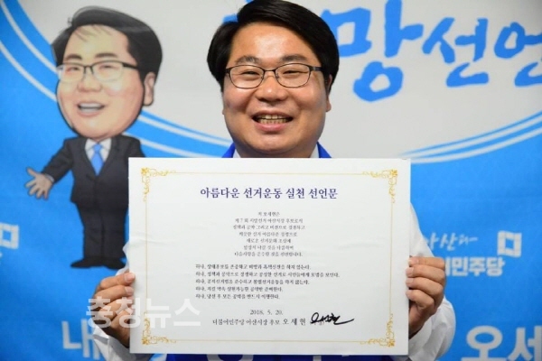 오세현 아산시장 후보, 아름다운 선거운동 실천선언 / 충청뉴스 최형순 기자
