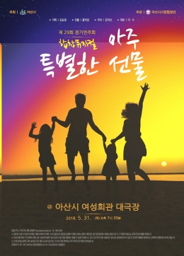 김순정 지휘자가 이끄는 아산시립합창단이 5월 가정의 달을 맞아 가족의 사랑을 주제로 한 합창 뮤지컬 <아주 특별한 선물> 공연을 이달 31일 목요일 오후 7시 30분에 아산시 여성회관 대극장에서 개최한다.