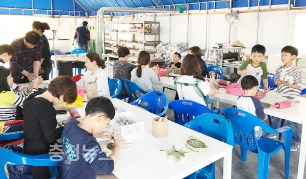 충남 서산시 지곡면 중왕리에 위치한 서산창작예술촌 야외체험장에서 운영 중인 도자기 만들기 체험 프로그램이 호응을 얻고 있다.