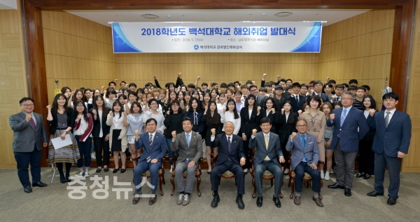 백석대학교(총장 장종현)는 23일 교내 글로벌외식관 5층 세미나실에서 재학생 및 교수진 100여 명이 참석한 가운데 해외취업 발대식을 열었다.