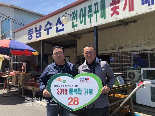 서면사랑후원회(회장 김형천)와 서면지역사회보장협의체(위원장 정해순, 김형천)는 지난 21일 최병환 풍광수산 대표와 조갑영 충남수산 대표가 행복한 기부에 27, 28번째 주인공으로 참여했다고 밝혔다.